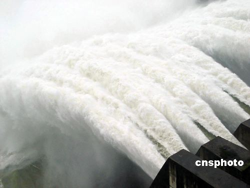 8月23日下午2時,丹江口水庫大壩打開第8個泄洪孔泄洪。受漢江丹江口上游持續降雨的影響,南水北調中線工程水源區的湖北丹江口水庫大壩,自8月18日18時開始,先后共開啟7個泄洪孔泄洪。這是繼2003年泄洪以后到今年入汛以來的首次泄洪。作者:袁野