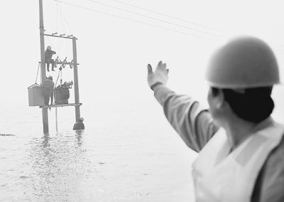 “必須趕在退潮前完成變壓器的安裝工作!”下午2時(shí)10分,22歲的浙江紹興電力局上虞市供電局線路二班的陶浙錦第三次扎進(jìn)混濁的海水,一支60多斤重的槽鋼被他從水下艱難背起。在桿上隊(duì)友的幫助下,槽鋼終于穩(wěn)穩(wěn)固定在水泥電桿上。