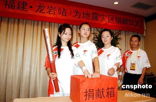 圖:福建龍巖火炬手為地震災(zāi)區(qū)民眾捐款