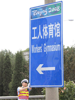 據北京市公安局公安交通管理局網站消息,目前,已安裝完成241面奧運專用指路標志。奧運專用指路標識的服務對象是以沿指定路線行駛的專用車輛為主(包括貴賓、運動員、技術官員、媒體和物流車輛),兼顧社會車輛。分別設置在奧運會及殘奧會所涉及的主要城市道路上和場館安保封閉區(qū)周邊,用于指示到達奧運會及殘奧會各比賽場館、訓練場館和非競賽場館的方向、地點、距離的信息,以及指引不同客戶群車輛行駛路線和專用停車場。共需設置奧運專用指路標志1366面。