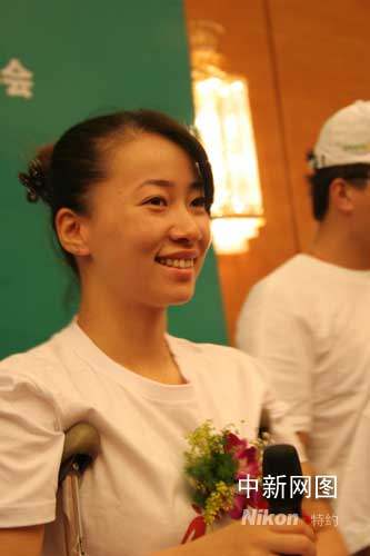 中新網北京七月十三日電 在北京申奧成功七周年、奧運倒計時26天之際,“我們的奧運——微笑中國2008全民健康志愿者行動”今天上午在北京人民大會堂正式啟動。作為該活動的健康形象大使,被譽為“中國最美麗火炬手”的殘疾人女火炬手金晶帶領志愿者代表們舉起右手宣誓:微笑面對世界,共同傳承奧運健康財富,讓中華民族的健康圣火永不熄滅。