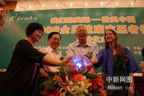 在儀式上,羅豪才、知名醫學健康專家洪昭光、莎羅女士以及志愿者代表、貴州益佰制藥公司總經理竇啟玲共同觸亮象征活動正式啟動的水晶球。顧秀蓮與羅豪才分別將全民健康傳承火炬授予竇啟玲和金晶兩位志愿者代表。