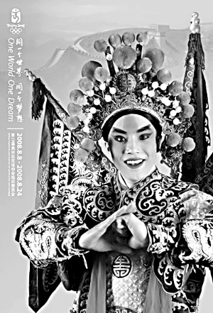 “演員擺的姿勢都是表演時的動作。”路毅告訴記者,拍攝過程中,演員根據京劇的表演方式在鏡頭前不斷的做動作,包含舉手的、抱拳的不同角度的姿勢,當時花了三四個小時,抓拍了上千張圖片。最后,奧組委挑中了這張圖片。