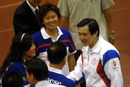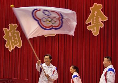 7月30日,馬英九在高雄向出席北京奧運的中華臺北隊授旗。