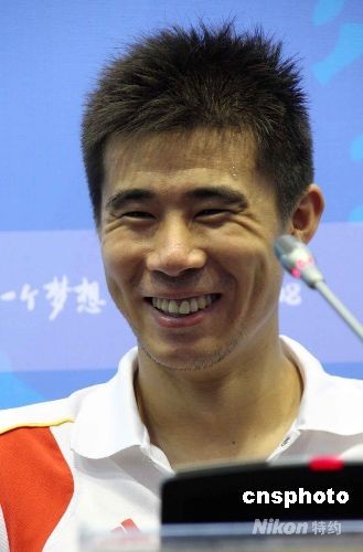 8月7日,北京奧運沈陽足球分賽場舉行男足預賽,中國隊先失一球,在最焦灼的時刻,董方卓打入一球,將比分扳平。圖為賽后,董方卓表示要將這粒進球獻給母親。中新社發 張淵 攝