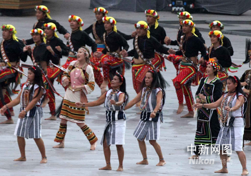 圖:高金素梅文化團隊在“鳥巢”內表演
