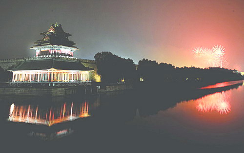 名人專訪故宮角樓前的焰火 新華社記者李俊東攝