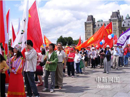 演出結束后游行開始,三組形態各異的獅子生龍活虎地在隊伍前面引路,身穿少數民族服裝的朋友高舉“同一個世界,同一個夢想!”的橫幅緊隨其后,接著是彩旗儀仗隊,幾十面奧運五環旗、北京奧運會旗及加中兩國國旗迎風招展。人們揮動手中的加中兩國國旗,熱情歡呼:中國加油!加拿大加油!北京奧運加油!游行隊伍長達一公里,最后到達渥太華市政廳。人們跳起秧歌,打起腰鼓,形成歡樂的海洋,一曲《歌唱祖國》表達了華人對祖國的思念。活動結束時,無數彩色氣球飄向空中,帶走渥太華華人對奧運的祝福,對祖國的祝福!(完)