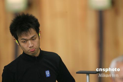 8月11日,2004年雅典奧運會男子10米氣步槍金牌得主、中國選手朱啟南,在北京奧運會男子10米氣步槍決賽中憾失金牌,印度選手賓德拉奪得冠軍,這也是印度代表團在本屆奧運會上奪得的首枚金牌。中新社發 武仲林 攝
