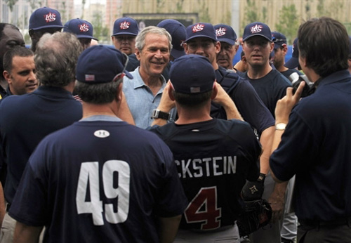 8月11日,美國總統(tǒng)布什現(xiàn)身五棵松棒球場,親自上陣秀球技,并與美國棒球隊運動員交談并合影留念。從8月8日,布什相繼來到“鳥巢”觀看奧運開幕式,“水立方”觀看游泳比賽,五棵松籃球館觀看籃球比賽,可稱得上是美國最大牌的超級體育迷。