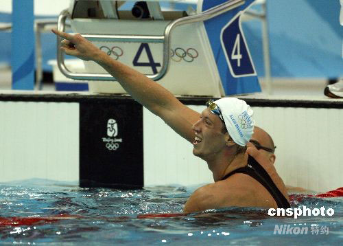8月13日,北京奧運會男子100米自由泳半決賽,澳大利亞選手埃蒙·沙利文以47秒05的成績打破在第一組中剛剛由法國選手阿蘭·貝爾納創造的47秒20的世界紀錄,獲得半決賽第一。中新社發 杜洋 攝