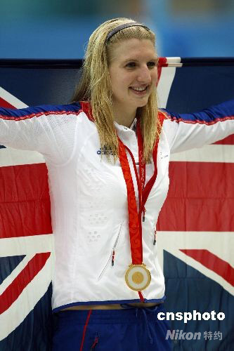 8月16日,在北京奧運(yùn)會(huì)女子800米自由泳決賽中,英國(guó)名將阿德林頓以8分14秒10奪取冠軍,打破由前美國(guó)名將埃文斯保持的塵封19年的世界紀(jì)錄。意大利選手菲利皮8分20秒23獲得銀牌,丹麥選手弗里斯以8分23秒03列第三。中國(guó)選手李玄旭8分26秒34排名第五。 中新社發(fā) 杜洋 攝