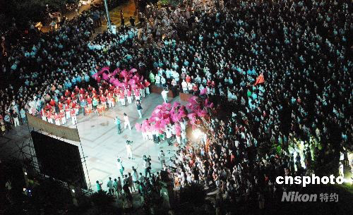 8月17日晚,福建龍巖市上杭縣人民廣場上人山人海,在當日舉行的北京奧運羽毛球男單決賽中,世界排名第一的“超級丹”林丹終于完勝馬來西亞名將李宗偉奪冠,圓了自己的奧運金牌夢。中新社發(fā) 福建分社 攝
