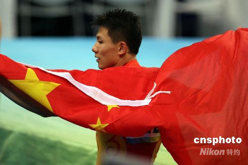 8月18日,中國選手陳一冰在北京奧運會男子吊環決賽中以16.6分的成績奪得金牌。 中新社發 武仲林 攝