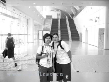 在娜塔莉身上有很多項(xiàng)的“第一”,她是第一個同時參加奧運(yùn)會和殘奧會的運(yùn)動員,也是第一個在奧運(yùn)會開幕式上擔(dān)任旗手的殘疾運(yùn)動員。在北京奧運(yùn)會上,娜塔莉獲得了女子十公里馬拉松游泳的第16名,她也成為了和金牌運(yùn)動員一樣出名的超級明星。昨天下午在“水立方”,從娜塔莉一露面就有隊(duì)員不斷地跟她打著招呼。