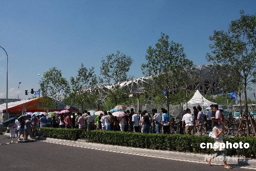 9月2日,北京市民排長隊一睹“鳥巢”風采,當日國家體育場“鳥巢”對持有相關證件的市民開放。為了讓群眾盡早分享奧運成果,實現場館的可持續發展,北京奧運場館賽后利用及功能轉換工作正在緊鑼密鼓地進行。一些無殘奧會比賽的場館將力爭短時間內向參觀游覽的市民和游客開放。中新社發 鄭雄增 攝
