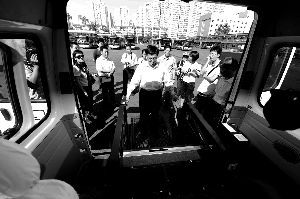 昨日,北京公交集團,北京市交通委副主任周正宇(中)正在體驗無障礙出租車。