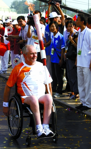 昨天上午,國際殘奧委會主席克雷文在世紀壇完成了第38棒傳遞。不需幫扶,他用自己強健的雙臂搖動輪椅“跑”完全程,印證了他對“殘疾人需要獨立”的理念。傳遞時間雖短,但中午記者在其下榻飯店采訪時,他仍余興未盡,他興致勃勃地談起了他對北京、對殘疾人運動的看法。