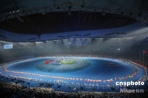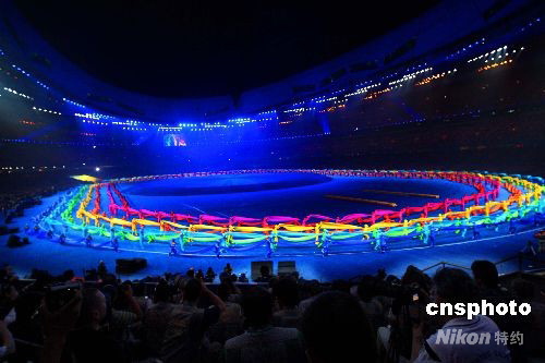 9月6日20時,北京2008年殘奧會開幕式在北京的國家體育場“鳥巢”舉行。 開幕式表演多彩多姿。 中新社發 盛佳鵬 攝