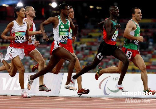 9月10日晚,北京殘奧會田徑各項比賽繼續在北京奧林匹克公園內的國家體育場-鳥巢舉行,在長跑賽事中,非洲肯尼亞、摩洛哥等國的選手如同奧運會一樣占據“霸主”地位。 中新社發 任晨鳴 攝