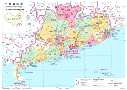 廣東位于中國大陸最南部,南臨南海,海岸線總長3368公里,島嶼眾多。地勢北高南低,境內(nèi)山地、平原、丘陵交錯(cuò)。河流大多自北向南流,主要有珠江、韓江、鑒江等。最長的珠江由西江、北江、東江匯流而成,長2122公里,是中國第三大河流。南海沿岸的珠江三角洲、韓江三角洲土地肥沃,是著名的魚米之鄉(xiāng)。