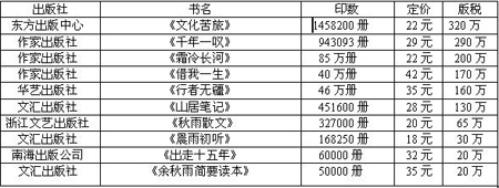 4、由于一些客觀原因,我們無法把作者作品所有版本的印數統計出來。上榜作家的版稅數字,如果將他們作品的各種版本加以統計,數目可能還要更高。
