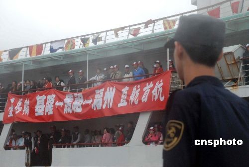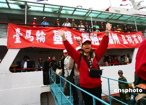 圖:“臺(tái)馬輪”基隆-馬祖-福州首航 臺(tái)胞受到熱烈歡迎