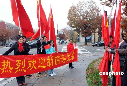 華盛頓華僑華人留學生迎接胡錦濤主席