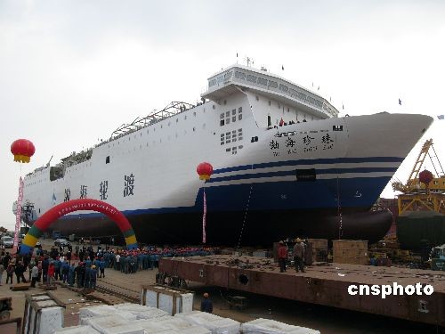 圖:中國自行設(shè)計建造的最大客滾船下水