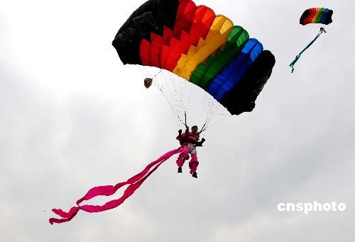 圖:八一跳傘隊在中國航展演繹美麗畫卷