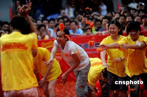 趣圖:廣東東莞上演萬人“番茄大戰(zhàn)”(2)