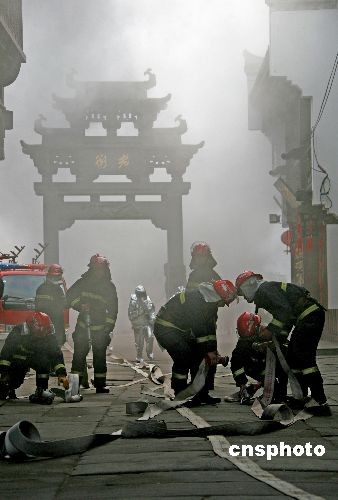 圖:安徽黃山消防演練進老街