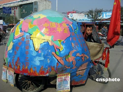 圖:江西小伙自駕“地球車”宣傳環保