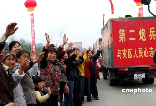 圖:群眾惜別四川抗震救災勇士