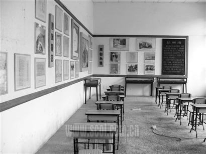 26日上午10時,記者來到內江市人民公園。綠樹掩映下,漢白玉雕刻而成的喻培倫大將軍紀念碑格外醒目。紀念碑身后,矗立著的一座古樸小樓就是喻培倫大將軍紀念館。在紀念館一側小門處,赫然掛有題名為“內江市電子琴手風琴培訓學校”的牌子。紀念館大廳正中,大將軍半身塑像周圍,圍立著電子琴學校的廣告牌、獲獎獎牌,而在大廳兩側陳列廳正中,則安放著成行成列的單人桌椅,整個陳列廳布局已與普通教室沒有任何差異。