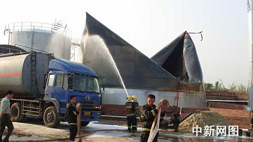 中新網茂名11月16日電(葉裕輝 鄧淞文)十六日下午十五時許,廣東茂名市區一在建的油廠發生油罐爆炸,茂名市公安消防部門出動十多輛消防車前去撲救,二十多分鐘后將大火撲滅。