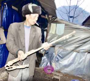 24日,考察小組有了件無意中的收獲——他們得知:剛剛進(jìn)入里叉河修建管護(hù)所微型電站的工人,在樹林中挖坑時(shí),竟然挖到一支步槍。該槍銹跡斑斑,只剩下金屬部件,但可以大致確認(rèn)出各部分尺寸。