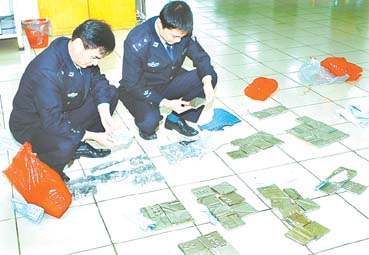 10月18日,一名姓梁的澳門(mén)女旅客從拱北口岸旅檢通道進(jìn)境時(shí),引起拱北海關(guān)旅檢關(guān)員的注意。關(guān)員依法對(duì)其進(jìn)行檢查,結(jié)果在該旅客的腹部、腿部發(fā)現(xiàn)用透明膠布捆綁著10塊重金屬,重13.5千克,均是金屬鎳。走私鎳這種少見(jiàn)的稀有金屬,引起了海關(guān)人員的關(guān)注。隨后幾天,拱北海關(guān)又查獲了同樣的走私鎳塊案件,單次走私量都在10千克左右。
