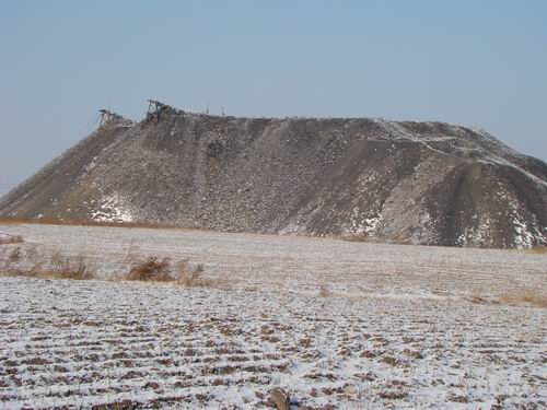 站在山坡的高處,可以看到七煤集團(tuán)向陽煤礦的很多礦井,這些礦井,都有一個(gè)相同的特點(diǎn),就是都有數(shù)目不等的廢礦石(煤矸石)山,它們占用的就是村民賴以生存的承包田。