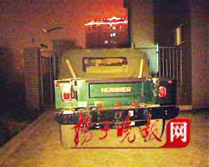 前天晚上9時(shí)許,記者接到報(bào)料,稱在南京莫愁湖東路126號(hào)的君園小區(qū)門前,有人用車堵住了兩個(gè)出入口。其中,一輛高大“威猛”的悍馬車擋在了小區(qū)的北門,一輛別克商務(wù)車和一輛桑塔納堵住小區(qū)的西門。