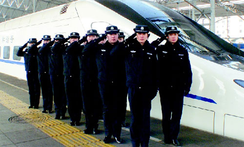 李鶴說,從1月3日起,就有6名女警登上了部分動車組進行了實驗,旅客們普遍感覺眼前一亮。當好動車組乘警不容易,每周她們都要接受嚴格的培訓,包括服務禮儀、警容風紀、處置突發事件等,還被派往沈陽桃仙國際機場學習空中保衛。英語測試、日常對話也必須過關。