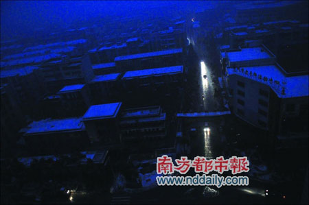 昨晚,記者在郴州市政府應急指揮中心寫稿,電力也兩度中斷。截至今日零時記者發稿時止,市政府大樓的供電仍未恢復。