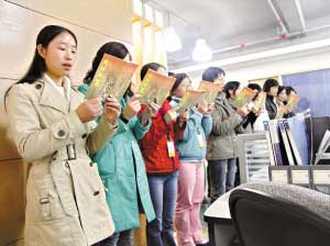 1月30日早上9時,東莞市東城區一家寫字樓內傳出了朗朗的讀書聲。幾十名員工站在一起大聲誦讀《弟子規》。這一寫字樓里出現的奇特場景源于公司的一項規定:每天早上9時到9時15分,所有員工都要讀書15分鐘的國學經典。