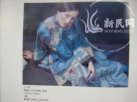 此次拍賣標的包括陳逸飛油畫《仕女圖》、《小提琴手》,謝稚柳設色紙本鏡片《虬松圖》,1980年版猴票一版,江詩丹頓、勞力士、寶璣、卡地亞、歐米茄、珍達菲等名表,德國萊卡M6收藏版相機,尼康F5相機以及老鳳祥銀樓金條、周大福金章、熊貓金幣等一批。拍賣會將于周六舉行,與平常的拍賣會不同,本次競買人在拍賣登記后,一塊號牌只允許兩人憑入場券進入拍賣會場。(新民晚報 薛慧卿)