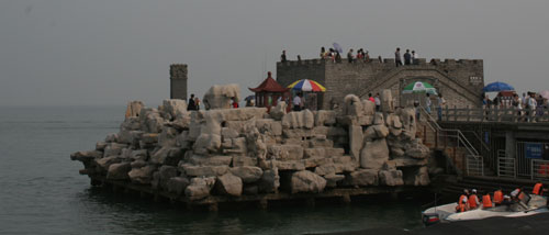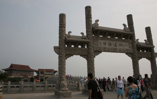 圖為山東蓬萊新興景區(qū)“八仙過海口”,游人如織。