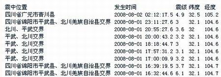 據地震臺網測定,北京時間8月2日02時12分,四川省廣元市青川縣(北緯32.5,東經105.2) 發生4.9級余震。
