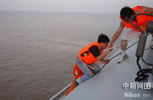 中新網寧波8月22日電(見習記者 何蔣勇 通訊員 張文榮)21日16時50分,位于杭州灣跨海大橋南航道位置,大橋養護中心的3名工作人員在大橋箱梁下面的檢修車上作業時被困。半小時后,三人被安全救出。 這也是世界第一跨海大橋——杭州灣跨海大橋上發生的第一次救人行動。