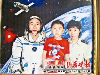 景海鵬和妻子張萍、兒子景宇飛在神六發射時的合影