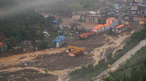 “那是民政局,那是公交公司運輸隊。”胡衛星手指的地方,均被厚厚的泥石覆蓋,一位陪同領導前來視察的當地官員說,以前老縣城一座5層樓的房子,現在只剩了一個頂子。老縣城到任家坪之間約500多米的距離,以前全是房子,現在影子都看不到了,而通往縣城唯一的盤山公路,也被泥石覆蓋。老縣城緊挨的任家坪的山上,蔥蔥郁郁的山坡,現在大片露出褐色的“疤痕”。