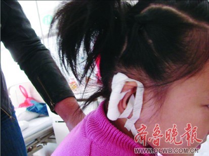 王女士趕緊帶孩子趕到聊城市第二人民醫(yī)院,急診室醫(yī)生稱孩子耳朵撕傷較重,需住院治療。醫(yī)生通過(guò)麻醉手術(shù)成功為小雨的右耳進(jìn)行了縫合。小雨的父親張先生告訴記者,孩子右耳后與頭皮連接處皮膚裂傷長(zhǎng)約3厘米,并且已傷及皮下,醫(yī)生為孩子縫了四針。張先生說(shuō),事件發(fā)生后第二天,小雨班主任委托其家人送來(lái)了1000元錢,但其本人一直沒露面,這兩天他們打電話時(shí)王老師的電話也打不通了。